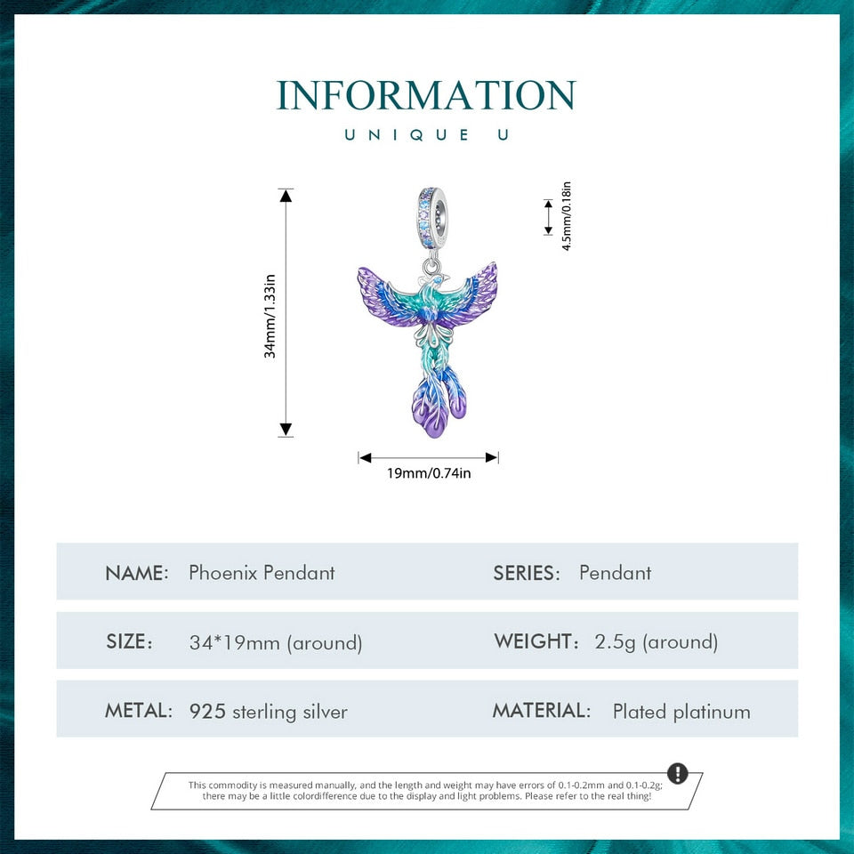 Dale un toque de elegancia y encanto mítico a tu estilo con nuestro Charm Colgante de Fénix en Plata de Ley 925. Esta pieza, de hermosa elaboración, presenta un majestuoso diseño de fénix, símbolo de renacimiento y fuerza, hecho en plata de ley 925 de alta calidad. Perfecto para añadir un toque de sofisticación y encanto a cualquier atuendo.