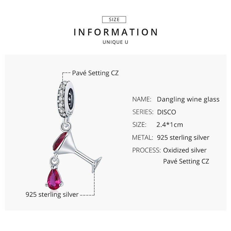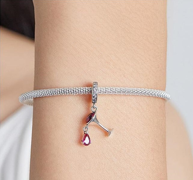 Dijes colgantes para copas de vino rojas de plata de ley 925