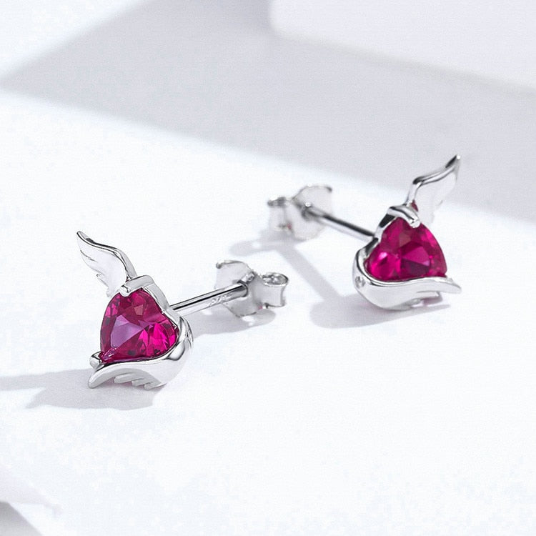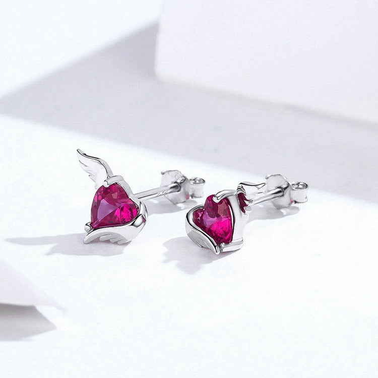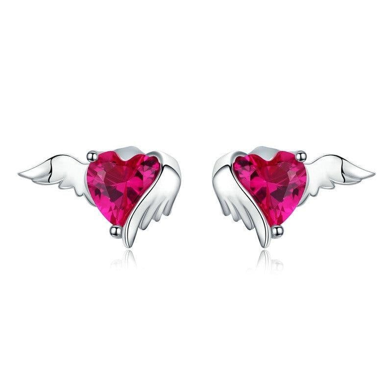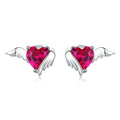 Pendientes de botón con alas de guardián y corazón en plata de ley 925