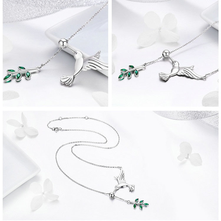 Collar colgante de plata de ley 925 con hojas de árbol, pájaro y primavera