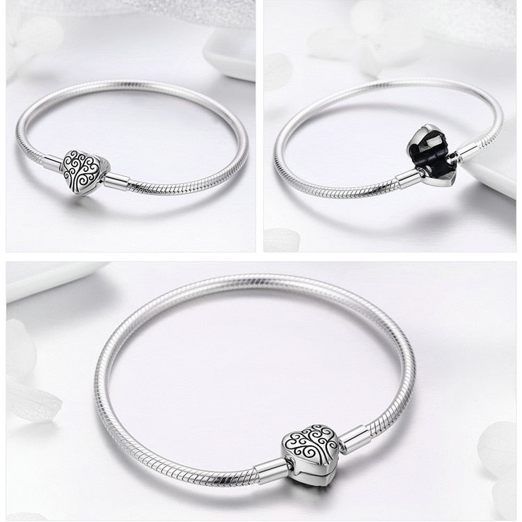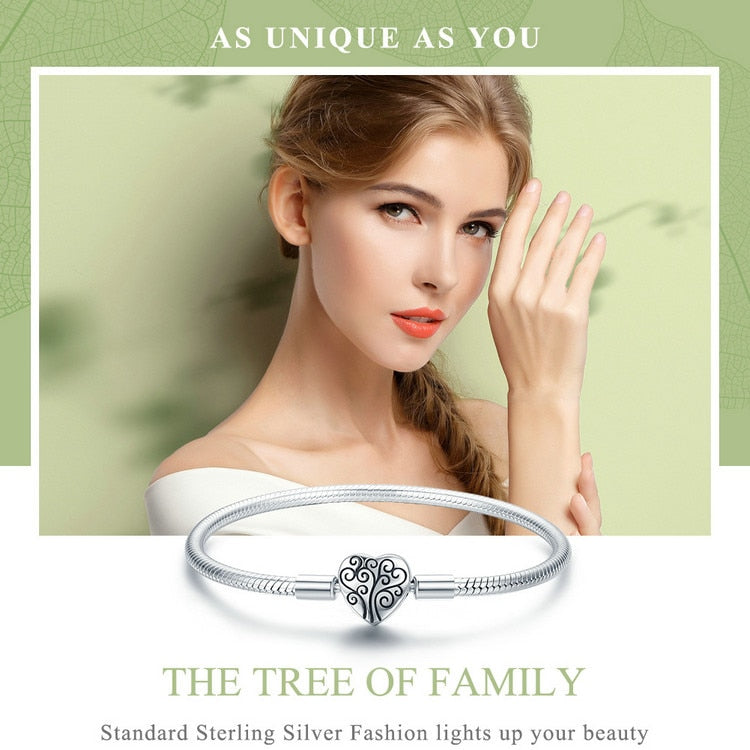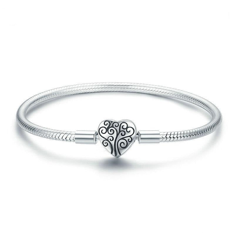 Pulsera de plata de ley 925 con cierre de corazón y árbol de la vida