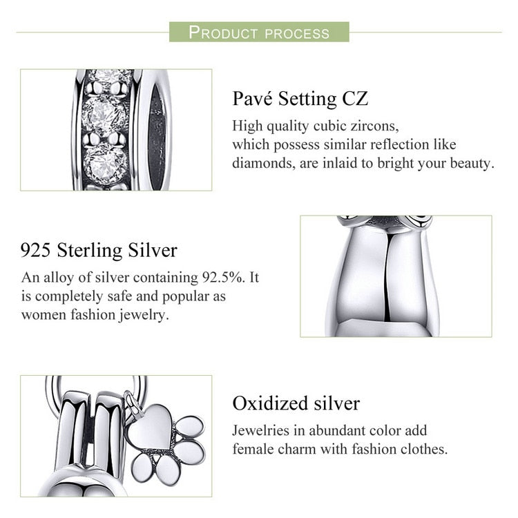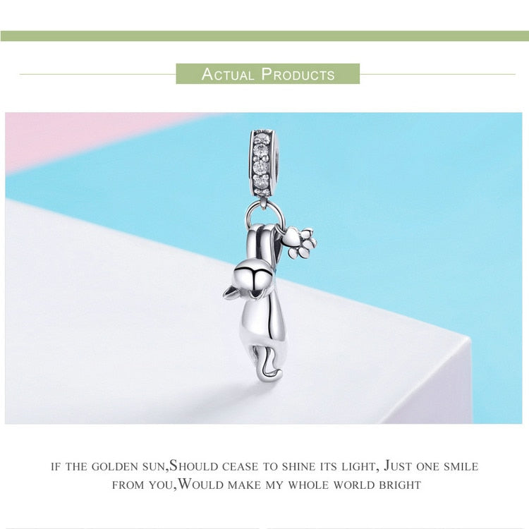 Charms de huellas de gato adhesivas de plata de ley 925