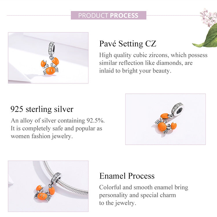Dijes de cangrejo de verano esmaltados en plata de ley 925