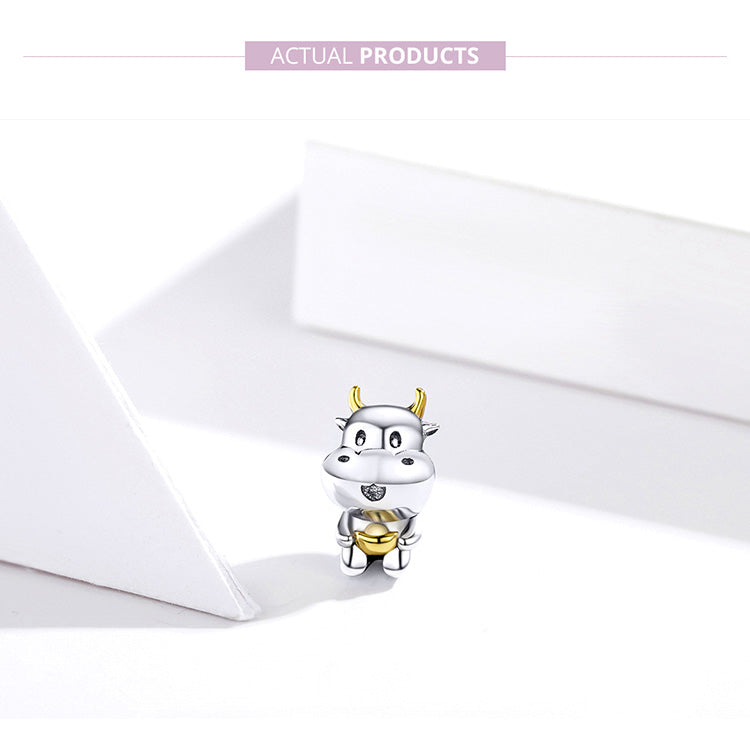 Dijes vintage de vaca de la suerte en plata de ley 925