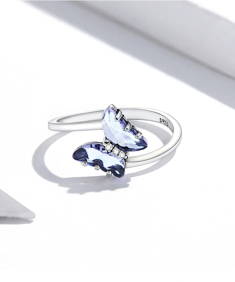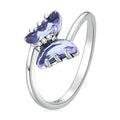 Anillo de mariposa con cristales pavé violeta en plata de ley 925