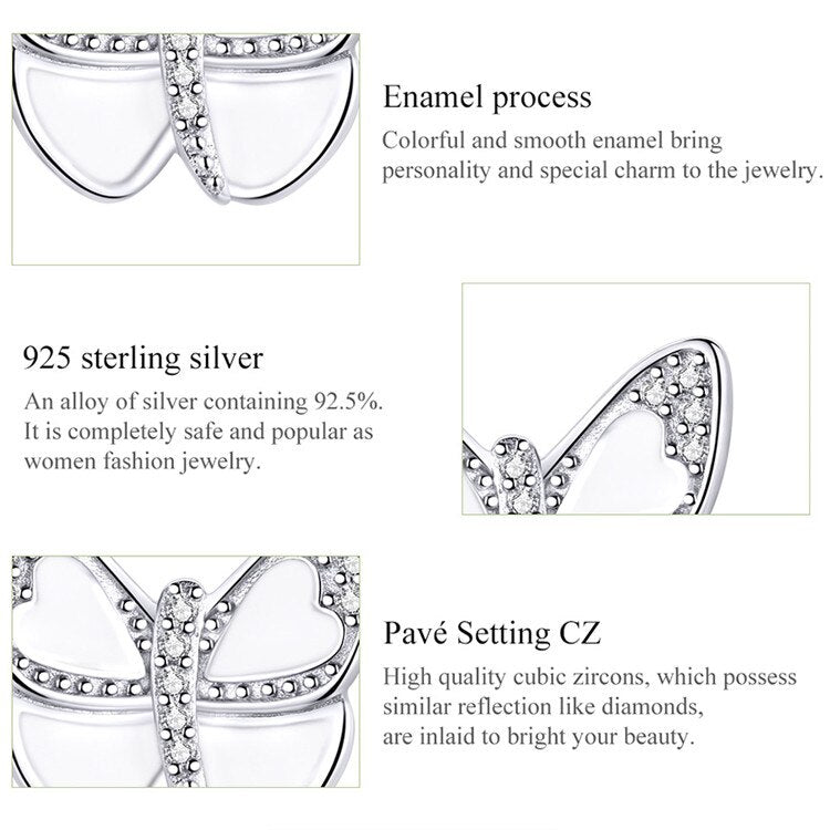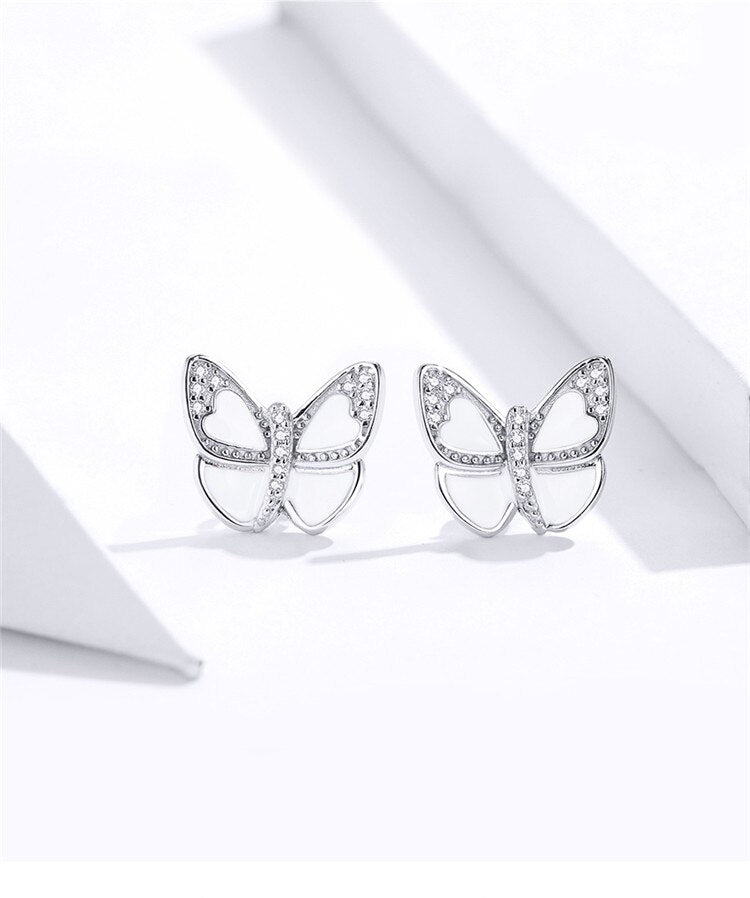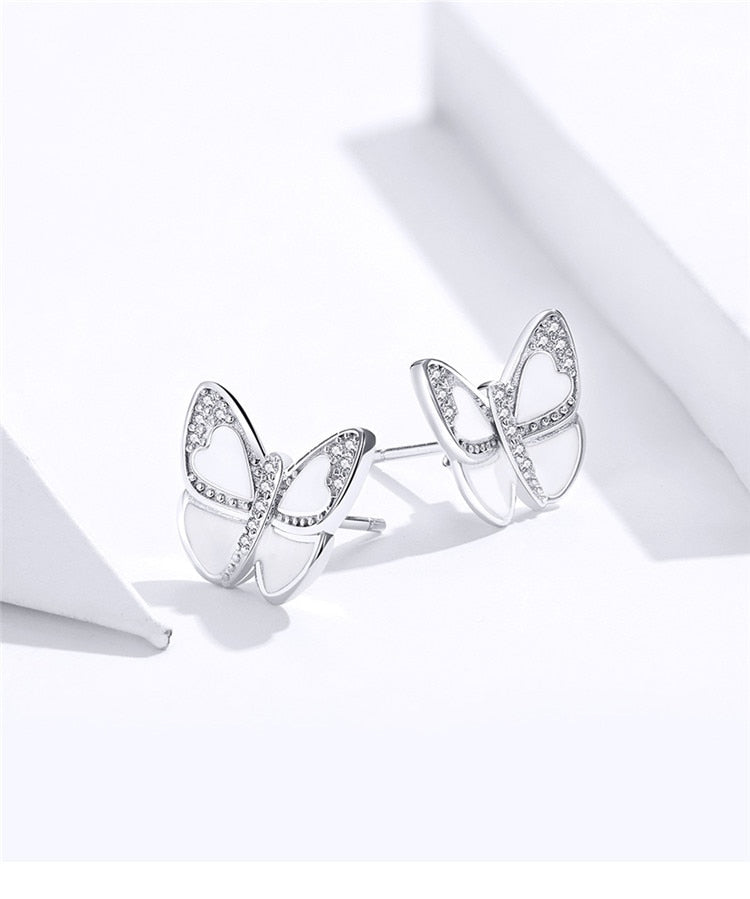 Pendientes de mariposa con esmalte blanco en plata de ley 925