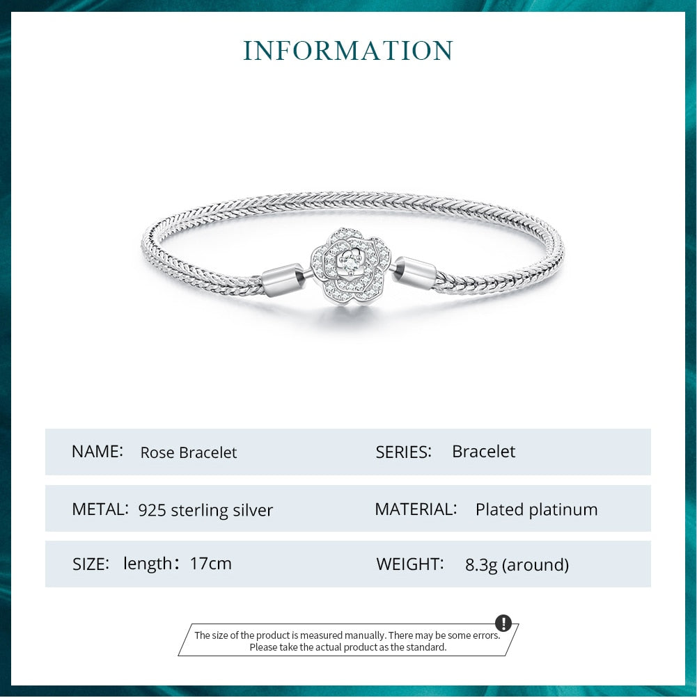 Pulsera de plata de ley 925 con hebilla de rosa y circonita