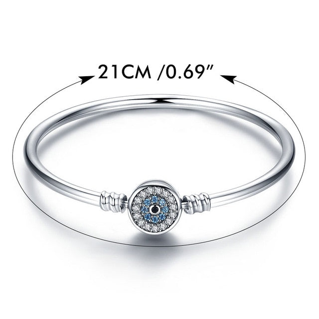 Pulsera de plata de ley 925 con corazón y ojos azules