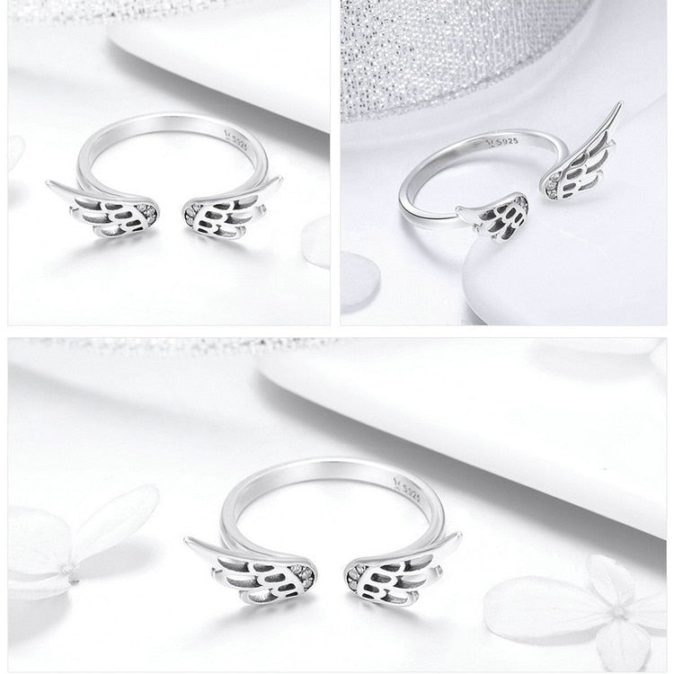 Anillo clásico de alas y plumas en plata de ley 925 auténtica