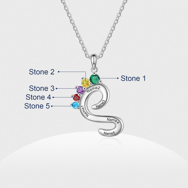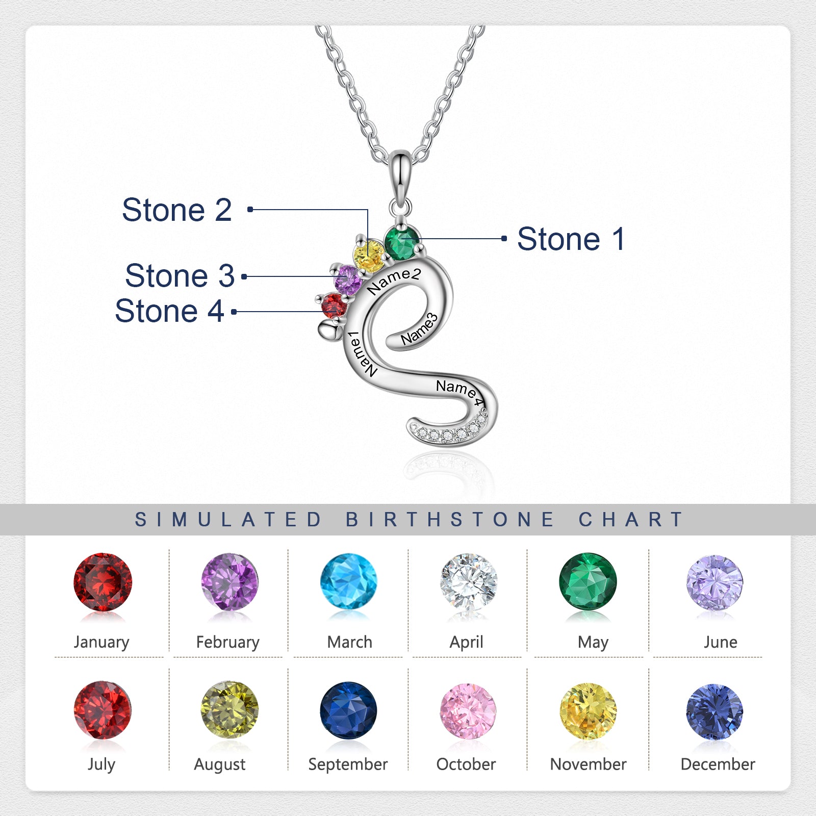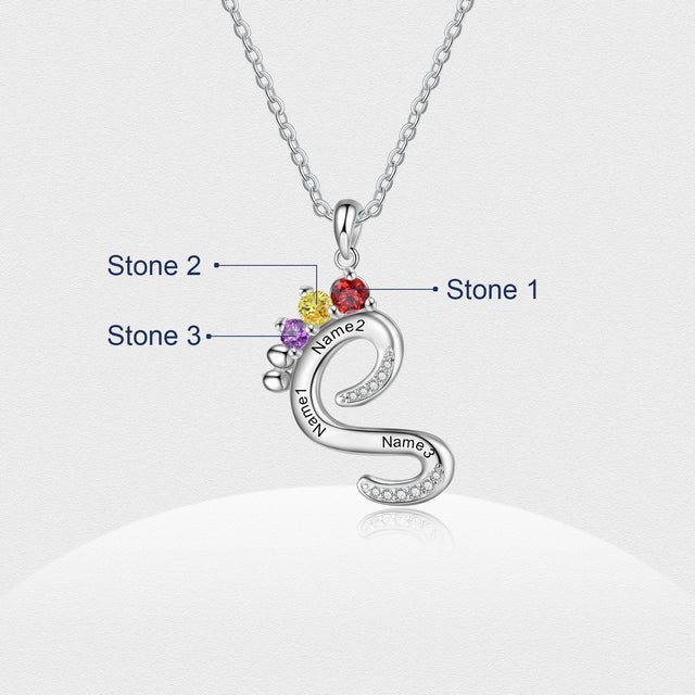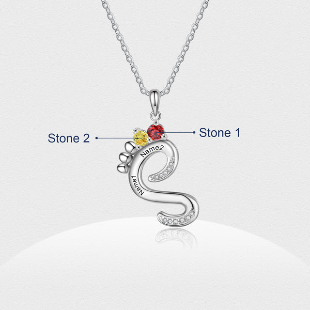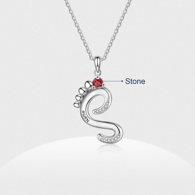 Collar personalizado con nombre de familia y piedra de nacimiento del pie del bebé