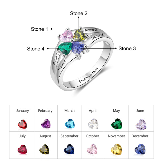 Anillo de flor personalizado con 4 piedras de nacimiento