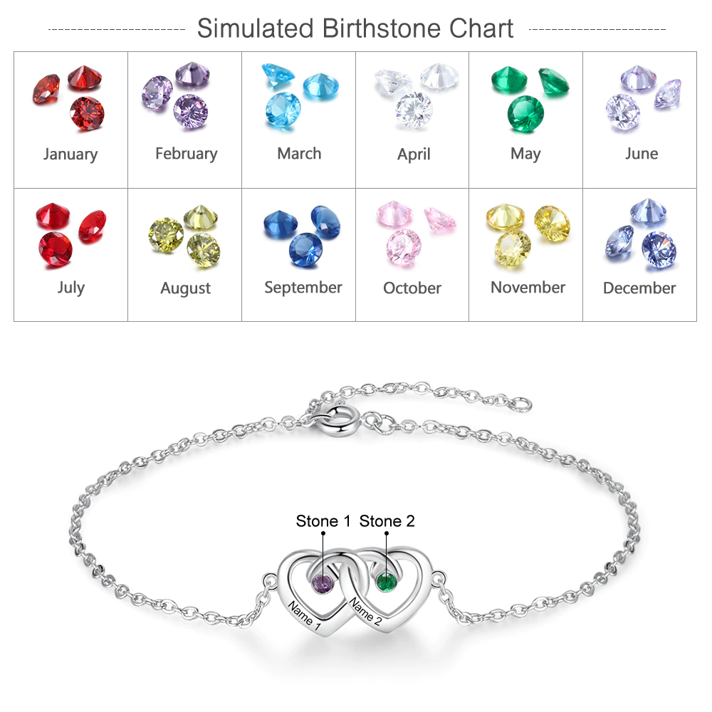 Pulsera personalizada con doble corazón y piedra de nacimiento
