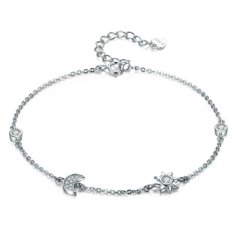 Pulsera de plata de ley 925 con cierre de mosquetón, estrella y luna