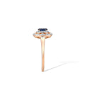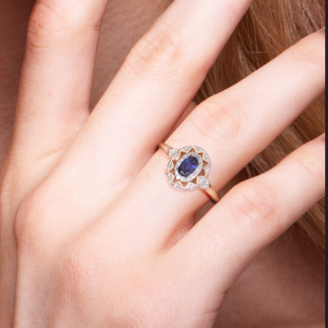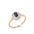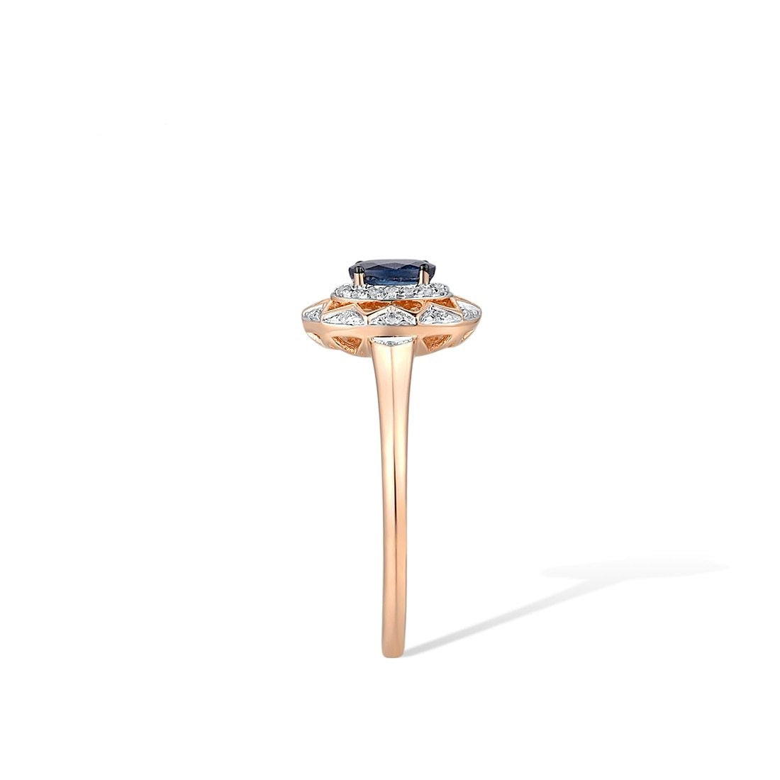 Anillo de oro rosa genuino 585 de 14 quilates para mujer con zafiro azul ovalado y diamante brillante, ideal para compromiso, aniversario y joyería fina.