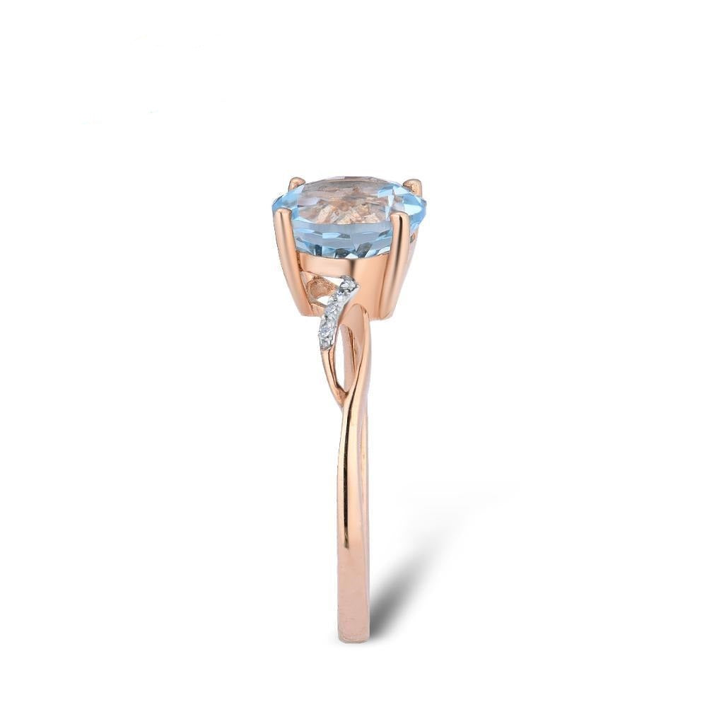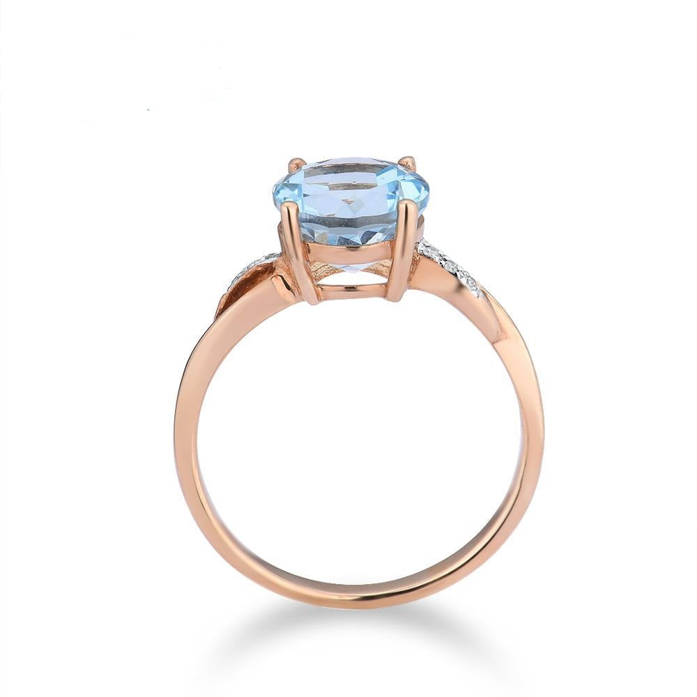 Anillo de oro rosa genuino de 14 quilates 585 con diamantes brillantes y topacio azul cielo para aniversario de bodas, joyería fina.