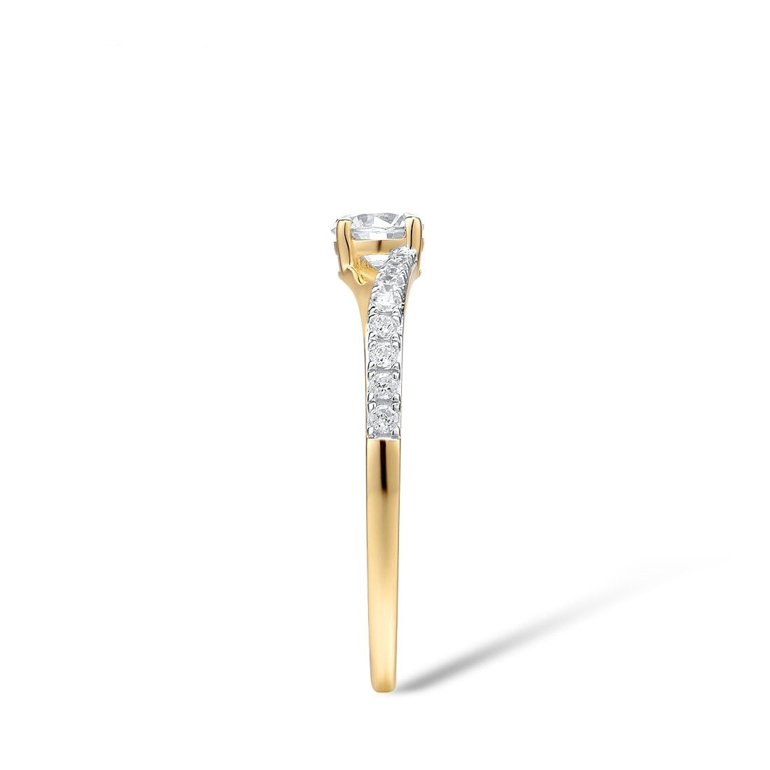 Anillo genuino de oro amarillo 375 de 9 quilates con un blanco brillante.