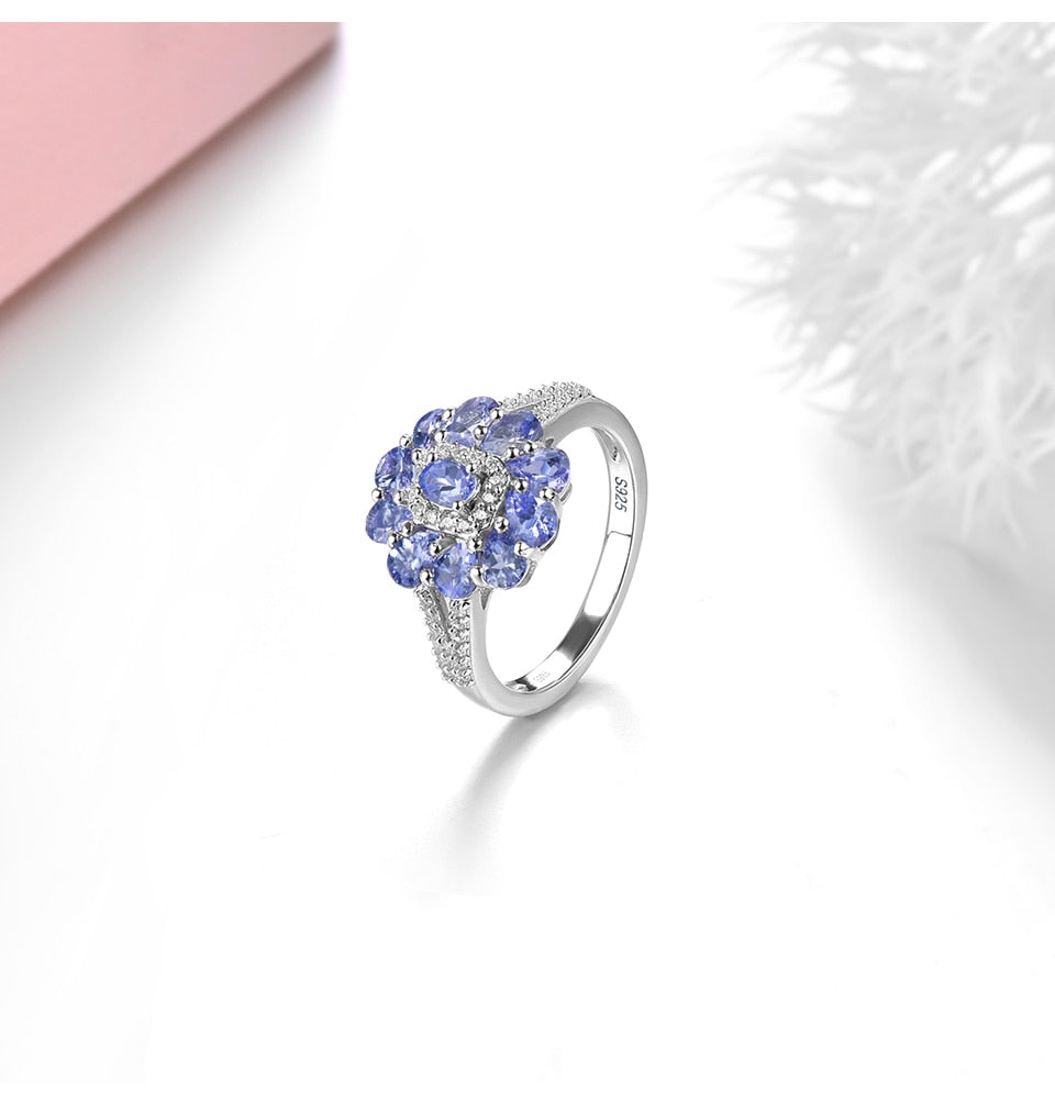 Anillo de tanzanita natural S925 con piedra preciosa auténtica