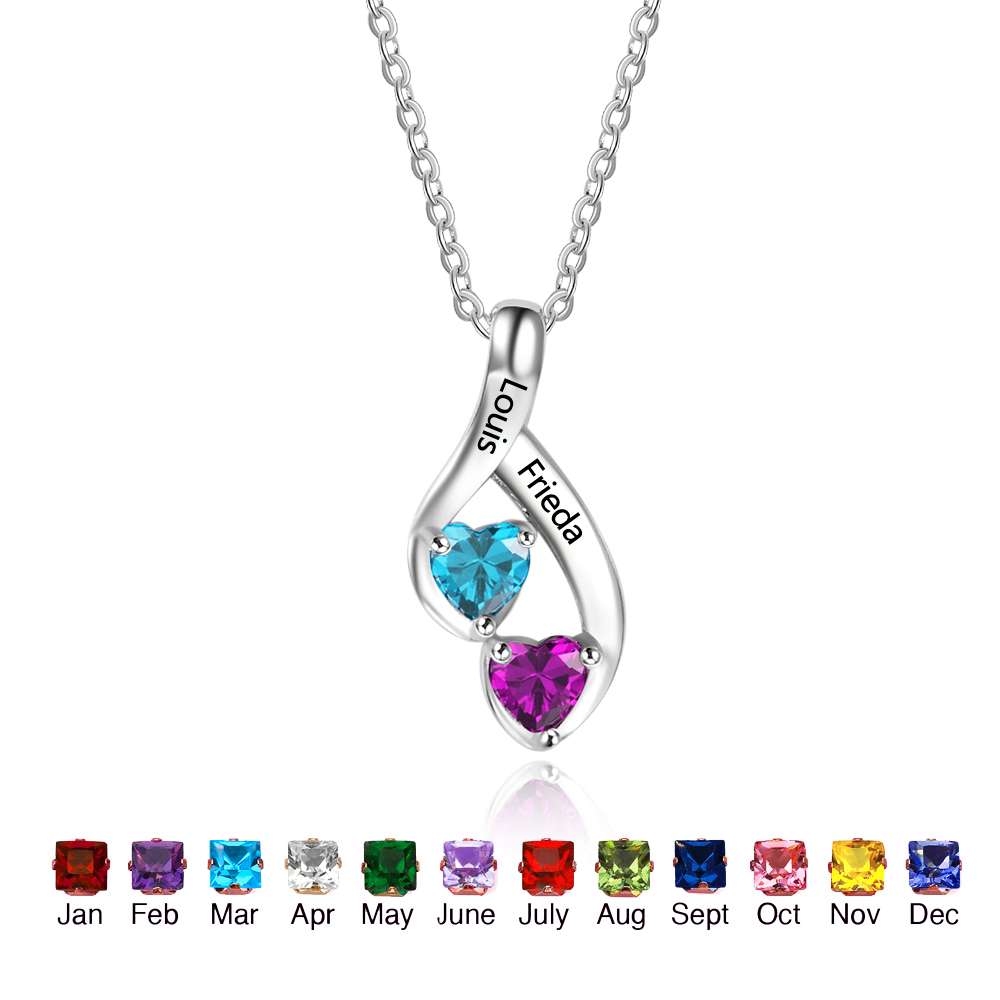 Collar personalizado con forma de corazón y grabado de nombre con 12 piedras de nacimiento