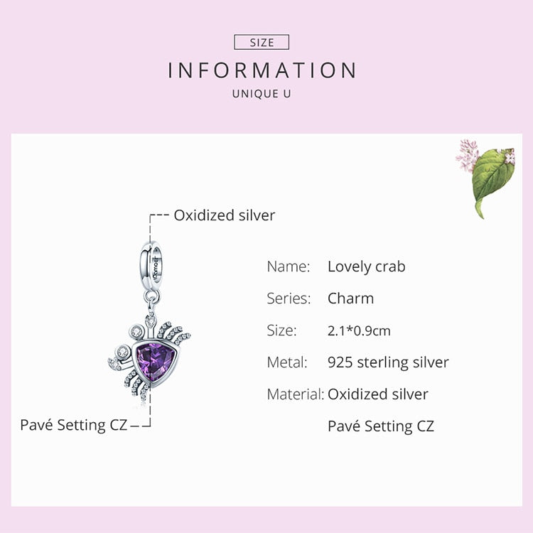 Dale un toque de elegancia y encanto a tu estilo con nuestros encantadores charms de cangrejo morado en plata de ley 925. Esta pieza, de hermosa elaboración, presenta un encantador diseño de cangrejo adornado con gemas moradas, hecha en plata de ley 925 de alta calidad. Perfecta para añadir un toque de sofisticación y un toque de belleza a cualquier look.