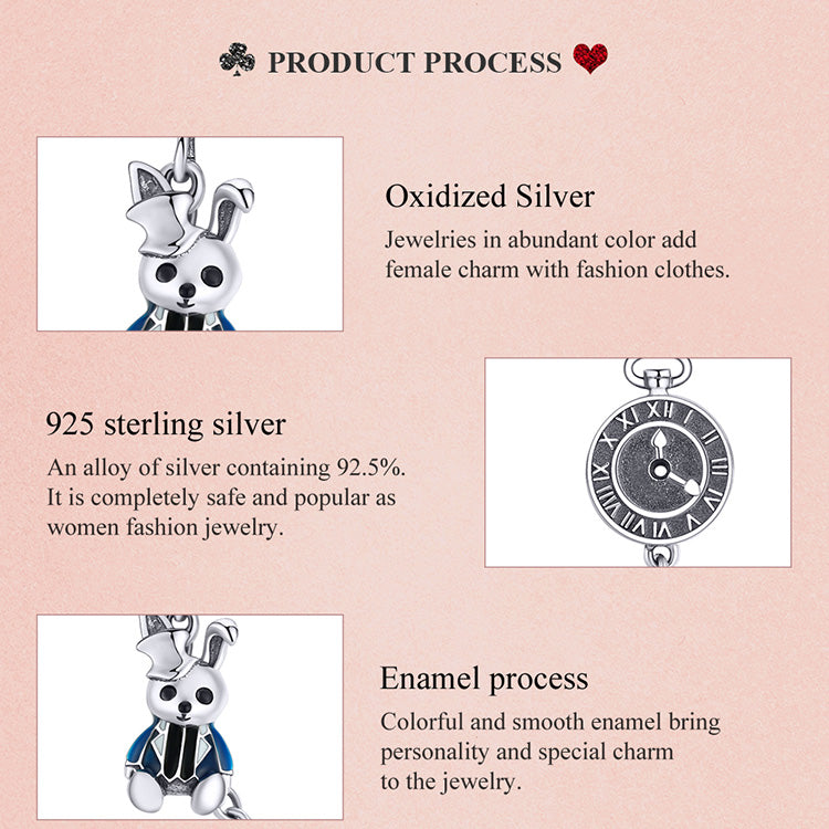 Dale un toque de elegancia y encanto a tu estilo con nuestros Charms de Conejo y Reloj del Bosque Mágico en Plata de Ley 925. Esta pieza, de hermosa elaboración, presenta un encantador diseño de conejo y reloj, hecho en plata de ley 925 de alta calidad. Perfecto para añadir un toque de sofisticación y belleza mágica a cualquier look.