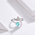 Anillo de cola de pez con lágrima de piedra azul oceánica en plata de ley 925