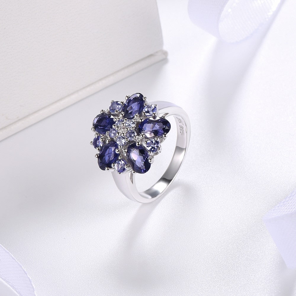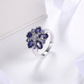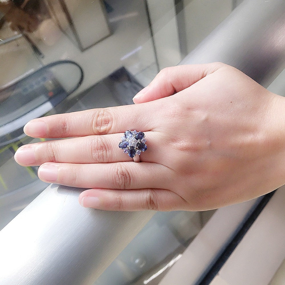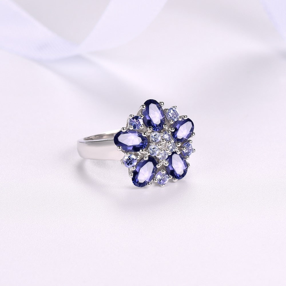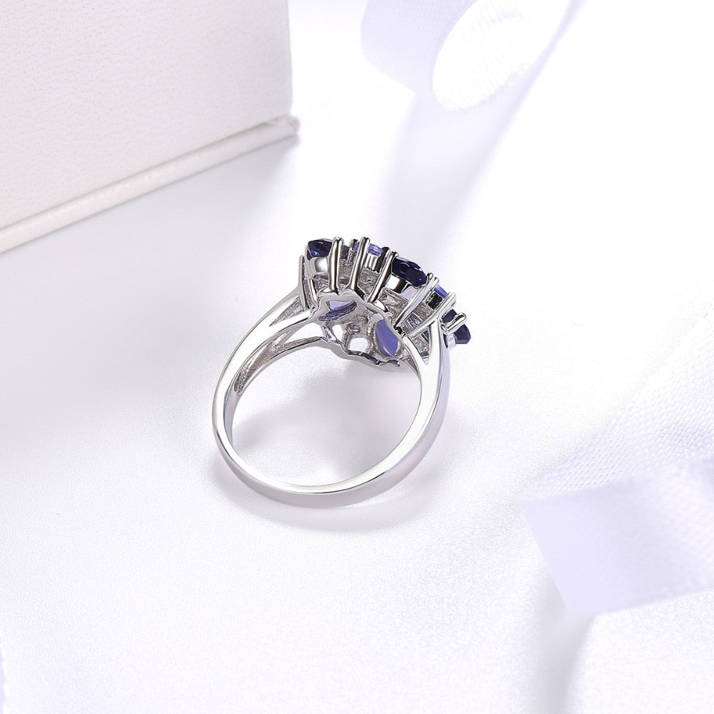 Anillo de tanzanita con detalles en piedras preciosas naturales