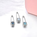 Broche de topacio azul octogonal natural en plata de ley maciza 925