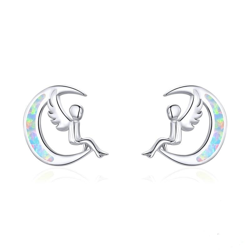 Pendientes de plata de ley 925 con forma de hada lunar y ópalo