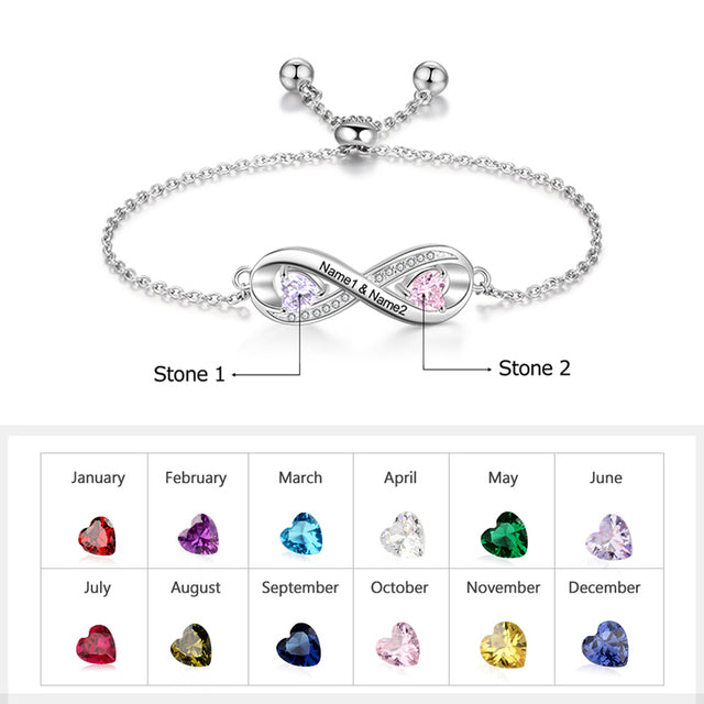 Pulsera de infinito personalizada con nombre grabado y piedras de nacimiento