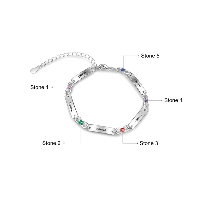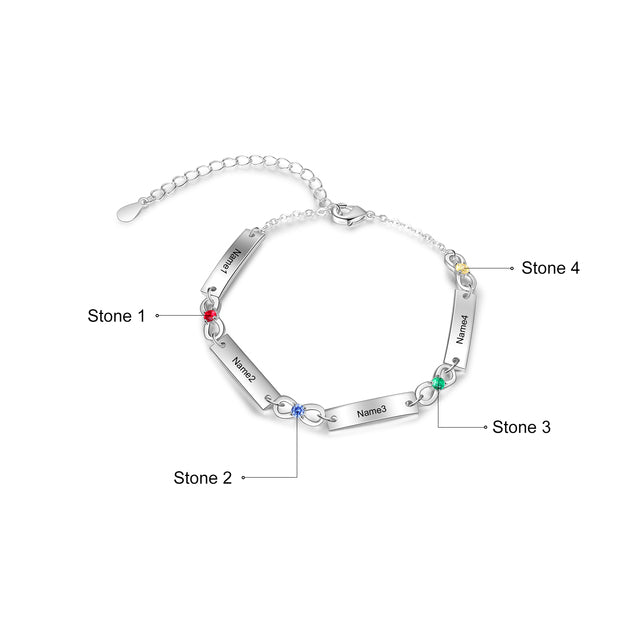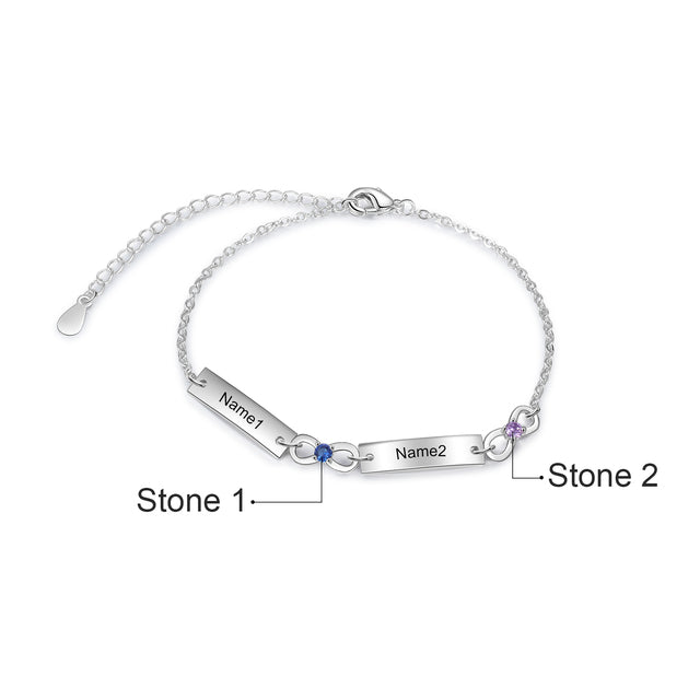 Pulsera de infinito personalizada con nombre grabado y piedras de nacimiento