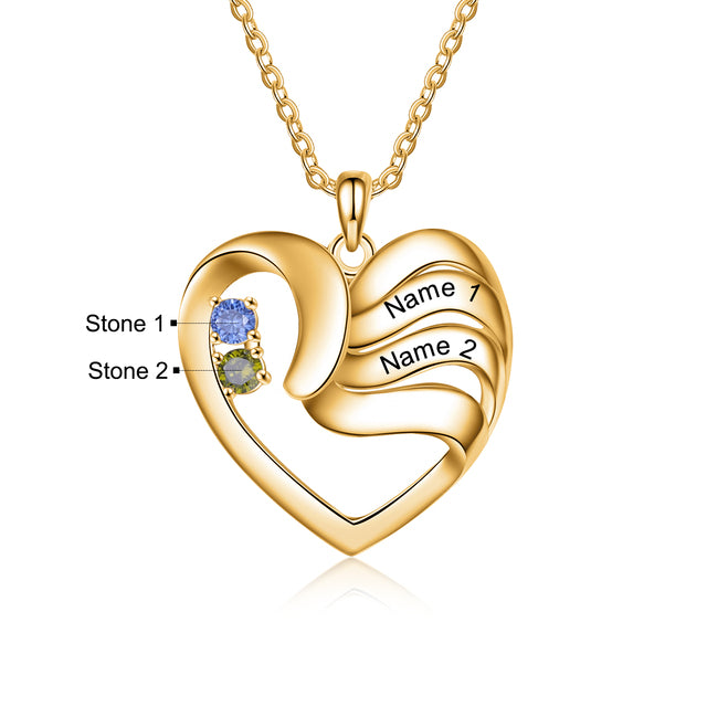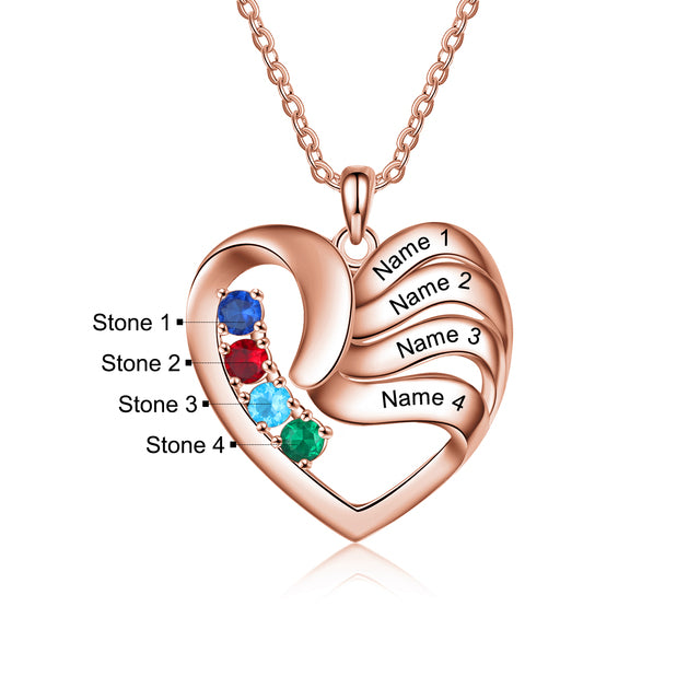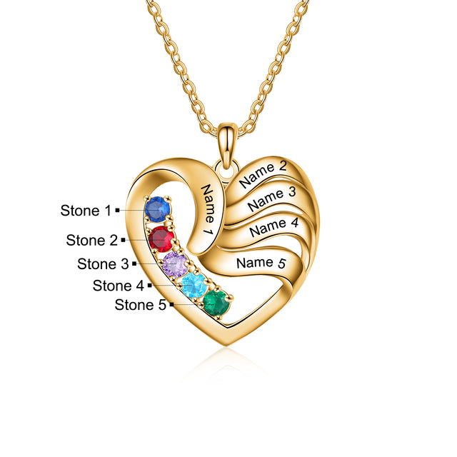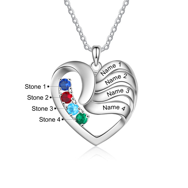 El colgante está adornado con de 2 a 5 piedras de nacimiento personalizadas, cada una representando a una persona especial en tu vida. Para darle un toque personal, puedes grabar nombres o palabras significativas en el corazón, convirtiéndolo en un recuerdo verdaderamente único.