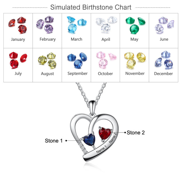 El colgante está adornado con piedras de nacimiento personalizadas, cada una representando a una persona especial en tu vida. Para darle un toque personal, puedes grabar nombres o palabras significativas en el corazón, convirtiéndolo en un recuerdo verdaderamente único.