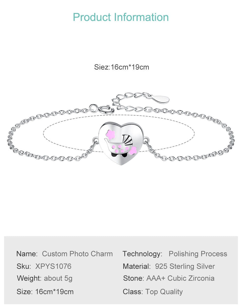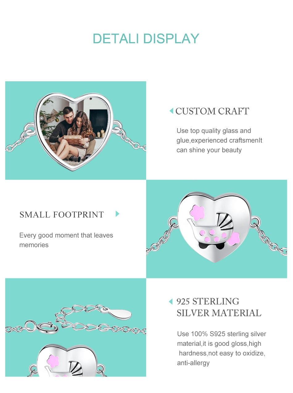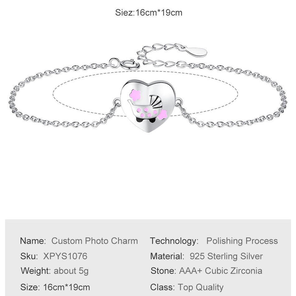 Celebra momentos especiales con nuestra pulsera personalizada de cochecito de bebé en plata de ley con esmalte rosa . Esta encantadora pieza presenta un encantador diseño de cochecito de bebé con detalles de esmalte rosa, elaborada en plata de ley de alta calidad. La pulsera se puede personalizar para convertirla en un regalo verdaderamente único y significativo para cualquier ocasión.