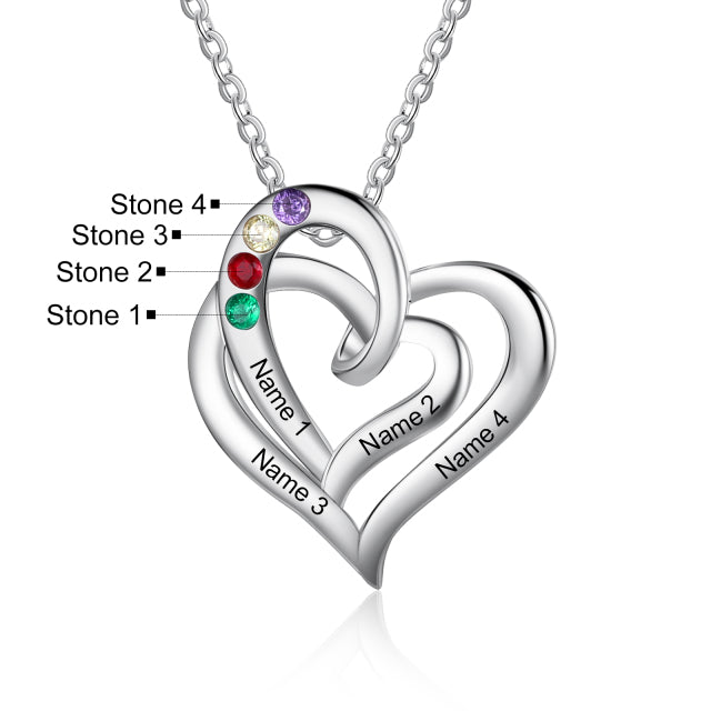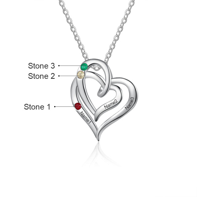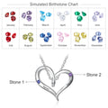 El colgante está adornado con piedras de nacimiento incrustadas, cada una representando a una persona especial en tu vida. Para darle un toque personal, puedes grabar nombres o palabras significativas en el corazón, convirtiéndolo en un recuerdo verdaderamente único.