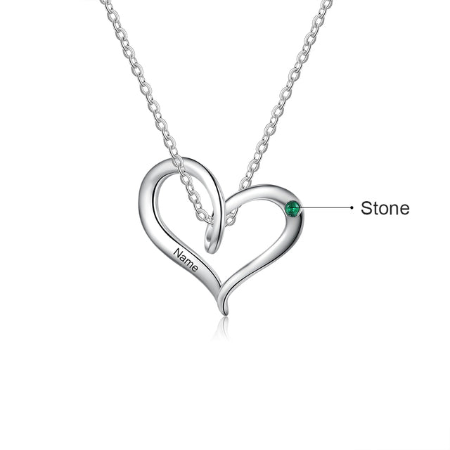 Collar personalizado con colgante de corazón de amor con piedra de nacimiento incrustada