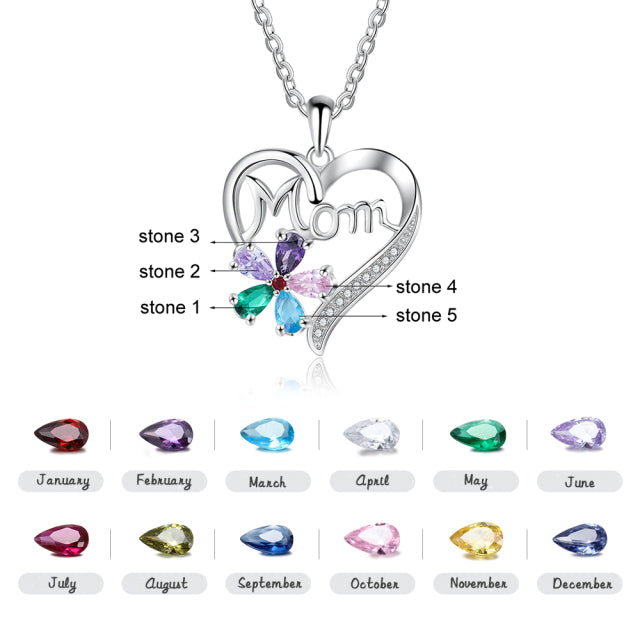 Collar de flores con 5 piedras de nacimiento y corazón personalizado para mamá