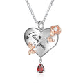 El colgante está adornado con una piedra de nacimiento personalizada y grabado con nombres o palabras significativas, incluido un emotivo mensaje de "Te amo", lo que lo convierte en un recuerdo verdaderamente único.