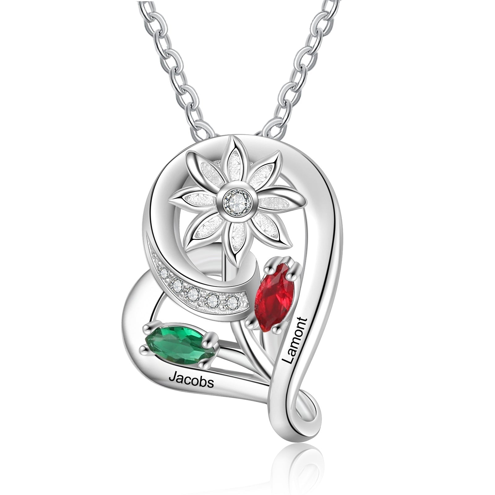 Collar personalizado de girasol con dos piedras de nacimiento y corazón