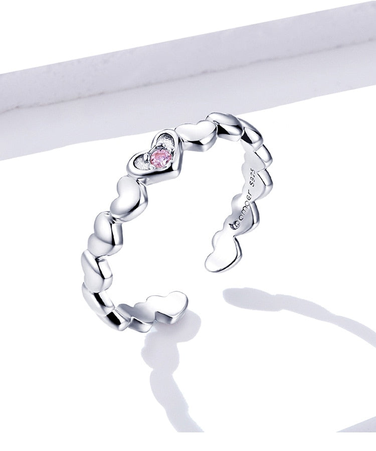 Anillo apilable de corazón rosa en plata de ley 925