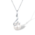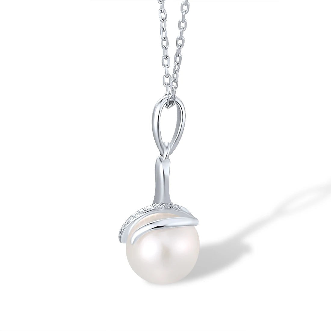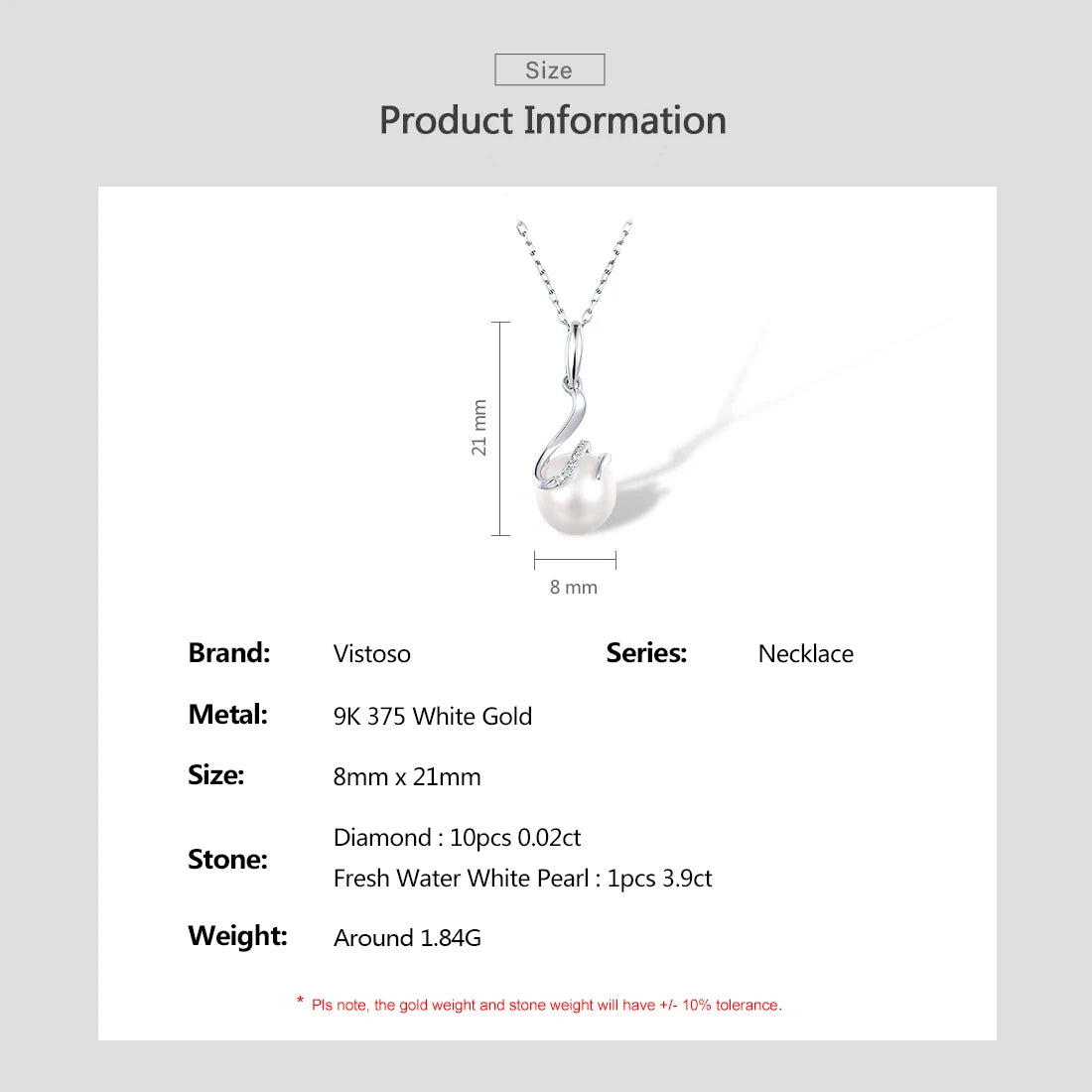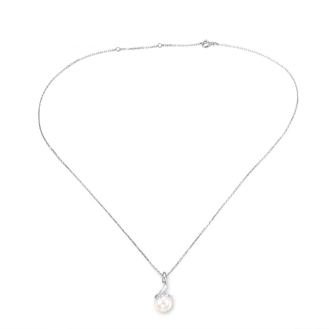 Collar de oro blanco puro de 9 quilates 375 con perla blanca de agua dulce y diamantes, elegante, clásico y moderno, joyería fina.