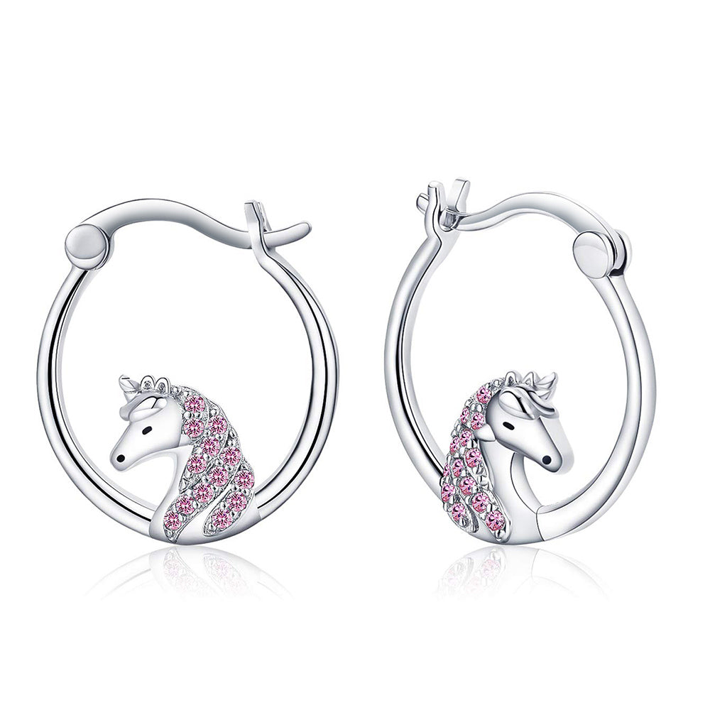 Pendientes clásicos de aro de unicornio con circonitas pequeñas y exquisitas
