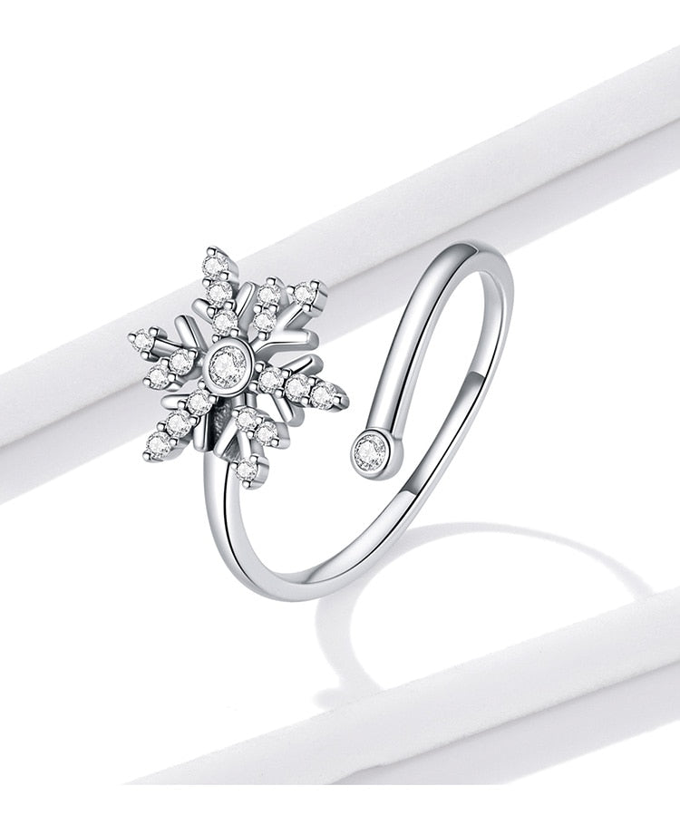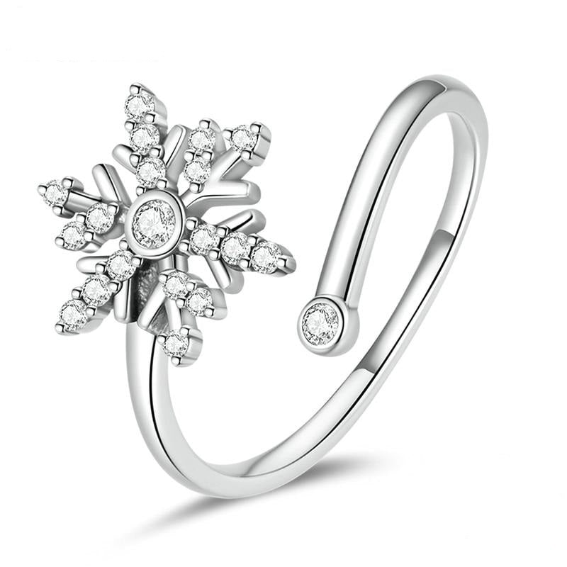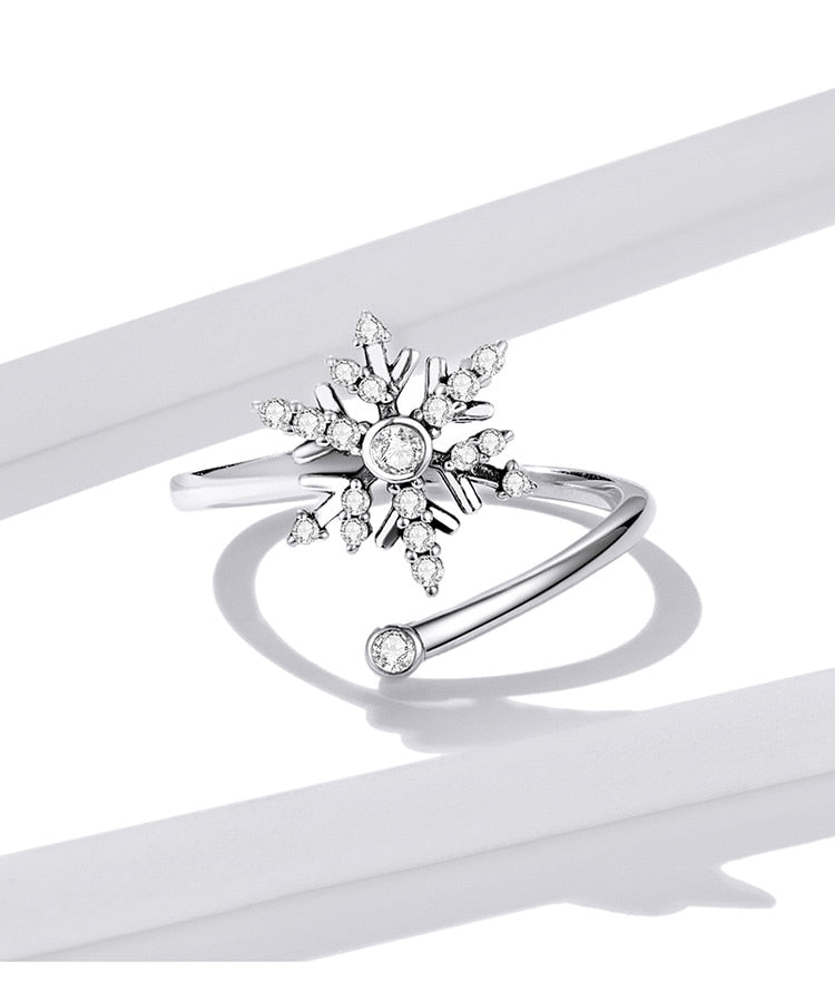 Anillo de copo de nieve de plata de ley 925 con cristales blancos