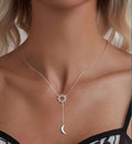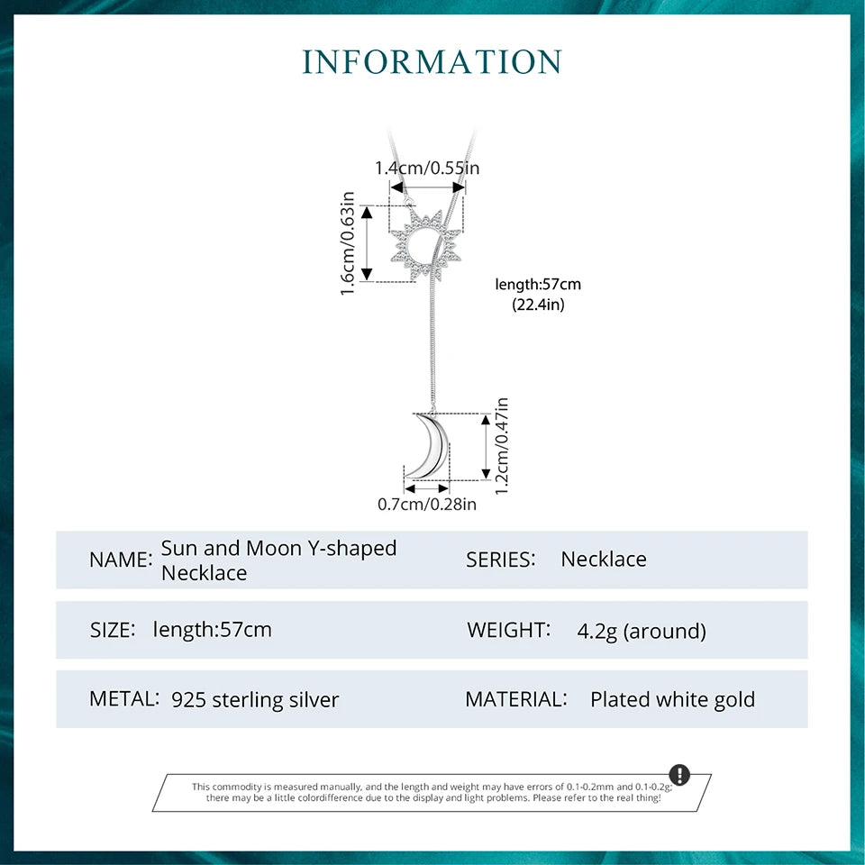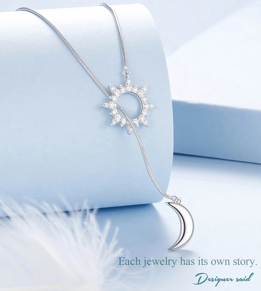 Collar de plata de ley 925 con forma de sol y luna bañado en oro blanco