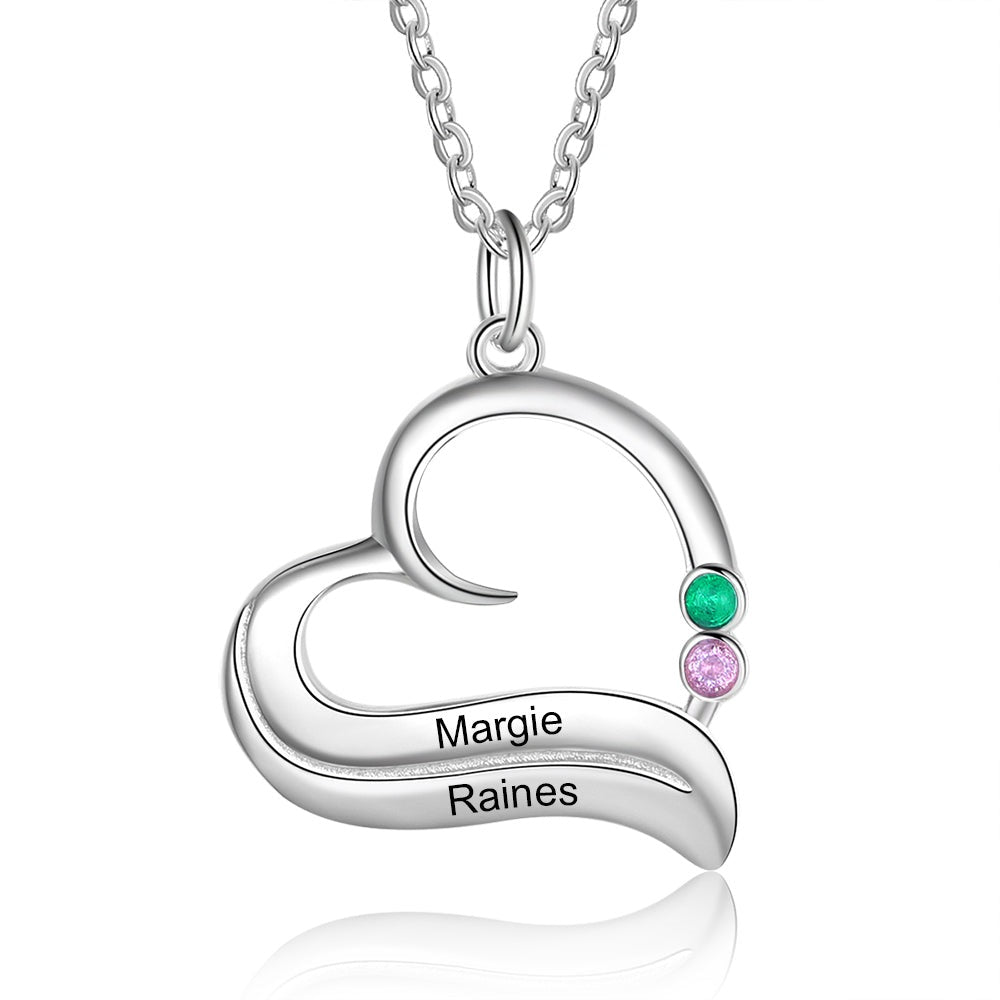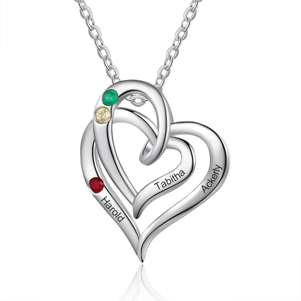 Collana personalizzata con nome inciso e pietra portafortuna a forma di cuore con 3 pietre portafortuna