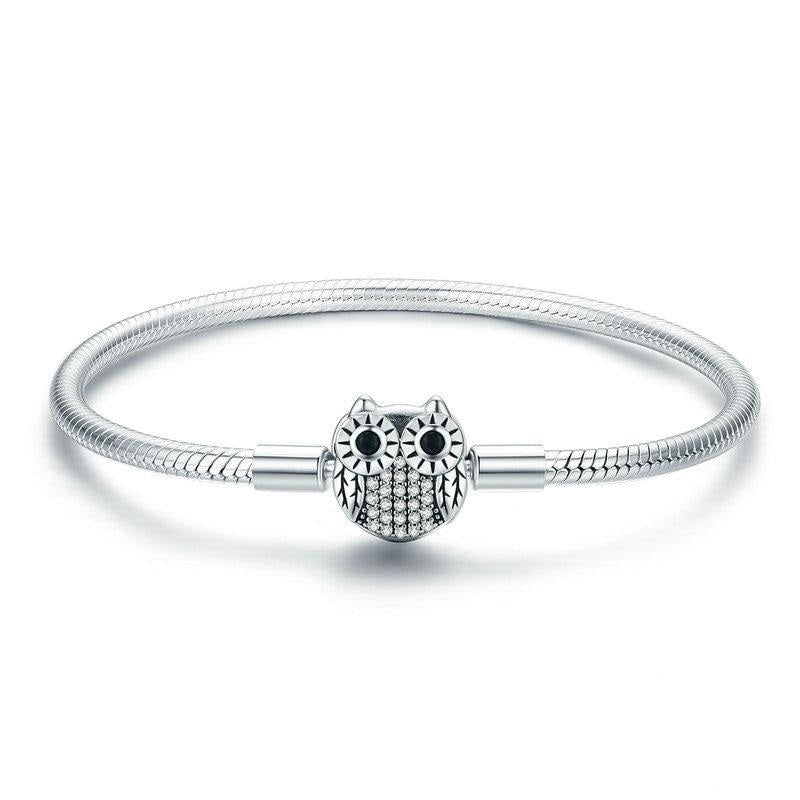 Bracciale con chiusura a forma di gufo in argento sterling 925