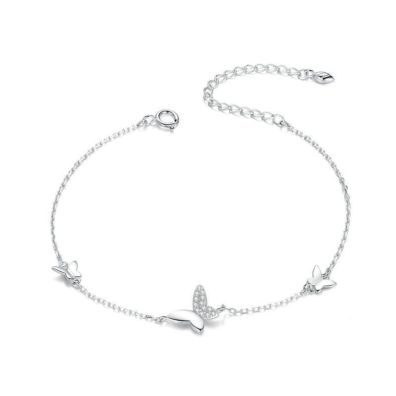 Bracciale a catena con chiusura a moschettone a forma di farfalla volante in argento sterling