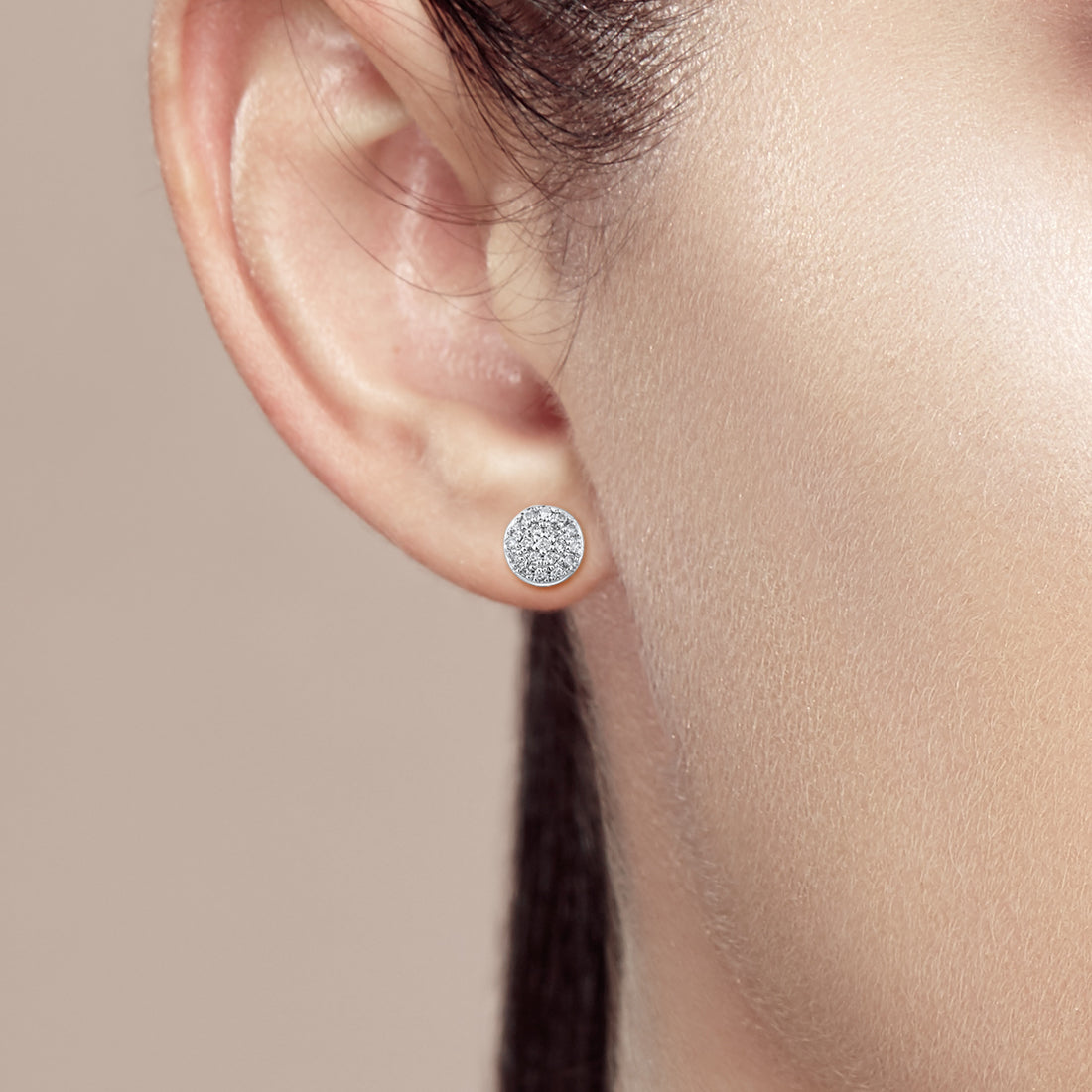 Aggiungi un tocco di sofisticata eleganza al tuo stile con i nostri orecchini a bottone rotondi con diamanti in oro bianco 14K 585. Questi splendidi pezzi presentano un design delicato impreziosito da 38 diamanti scintillanti, tutti incastonati in oro bianco 14K 585 di alta qualità. Perfetti per aggiungere un pizzico di glamour senza tempo a qualsiasi outfit.