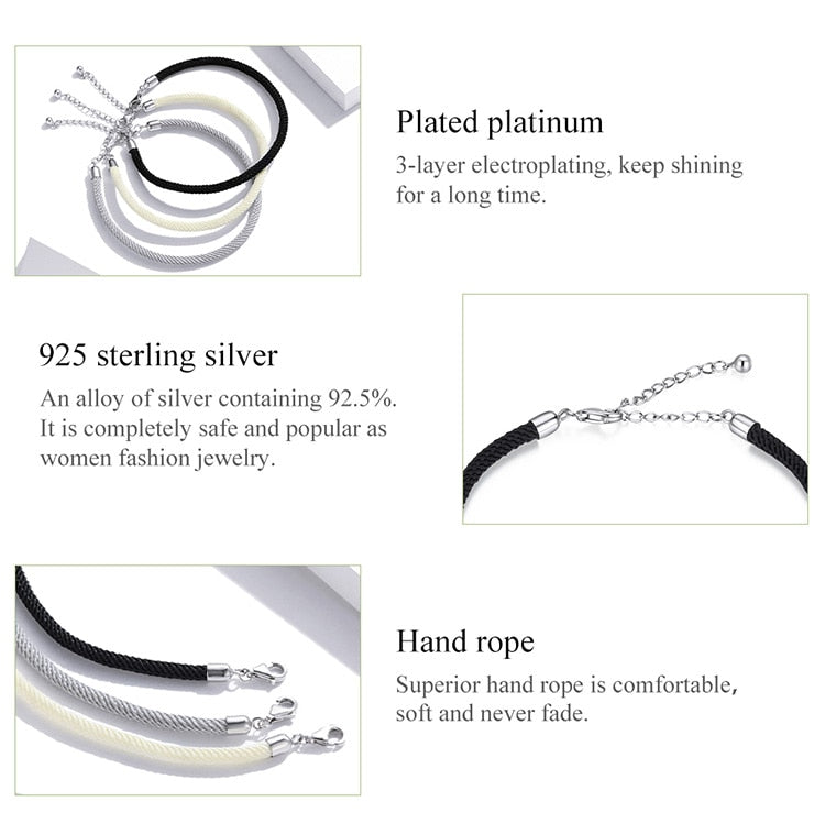 Materiale principale : argento sterling 925 e cordino intrecciato nero