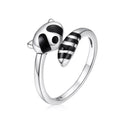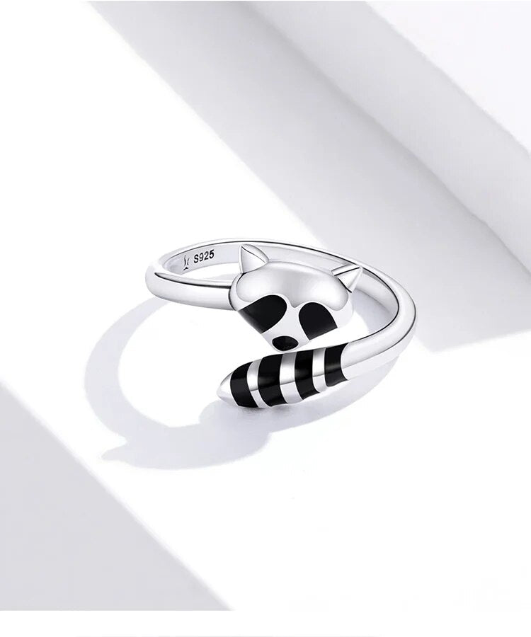 Aggiungi un tocco di stravaganza alla tua collezione di gioielli con il nostro anello in argento sterling 925 con smalto nero e procione . Questo adorabile pezzo presenta un grazioso design a forma di procione, realizzato in argento sterling 925 di alta qualità con dettagli in smalto nero.
