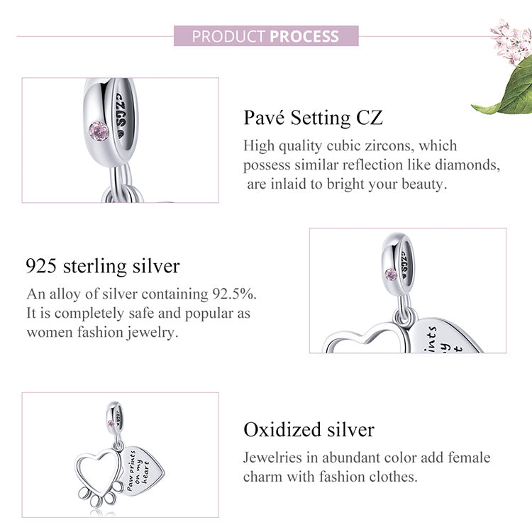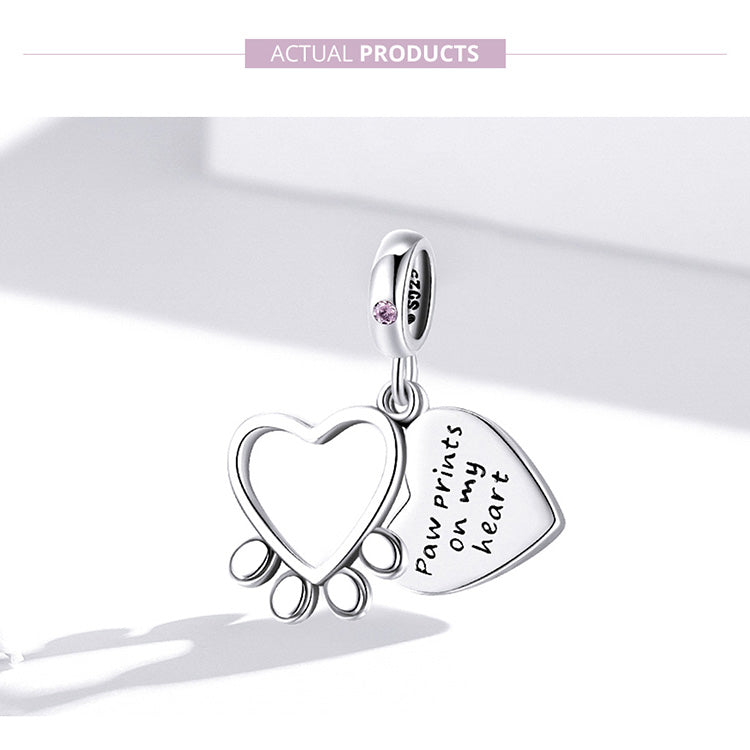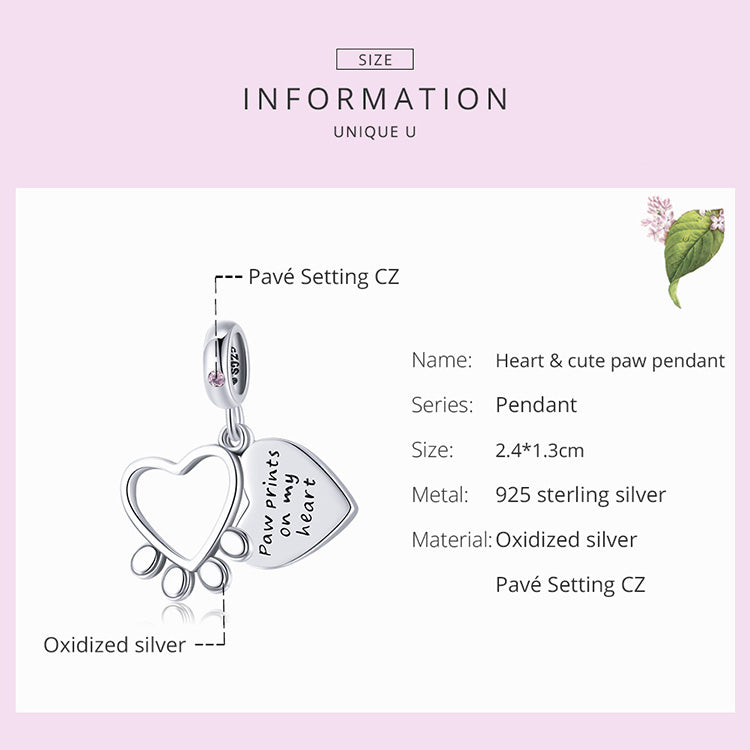 Ciondoli a forma di cuore in argento sterling 925 con zampa carina